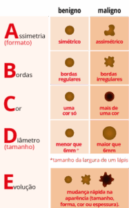 - Melanoma, o mais perigoso, pois pode se espalhar para outros órgãos